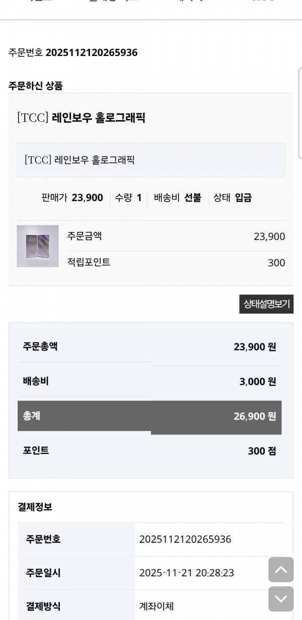 레인보우 홀로그래픽을 구매 했는데 언제쯤 오나요?